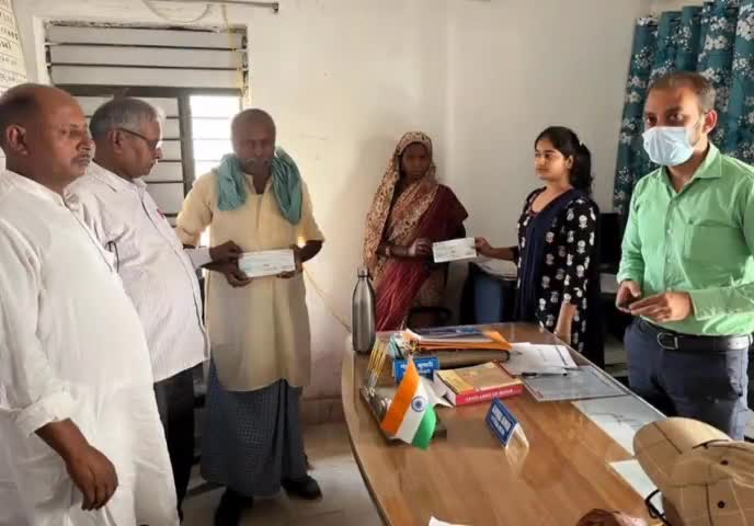 चक्की: चक्की क्षेत्र के 2 पीड़ित परिवारों को अंचलाधिकारी एवं राजस्व कर्मी ने सौंपा चेक
