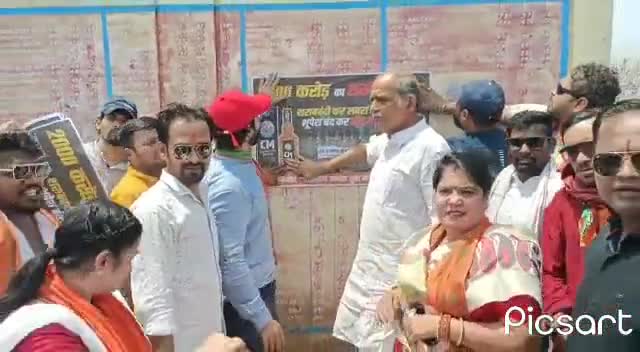 राजनांदगांव : मोहारा स्थित शराब दुकान में क्या किया भाजयुमो ने देखे वीडियो ,,,,