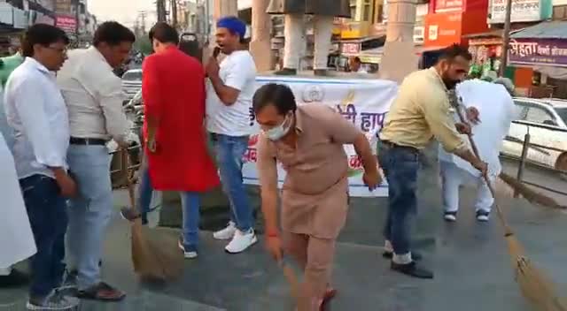 हापुड़।मुख्यमंत्री योगी जी द्वारा प्रियंका गांधी जी पर गलत टिप्पणी को लेकर कांग्रेसियों में रोष, झाड़ू लगाकर किया विरोध दर्ज