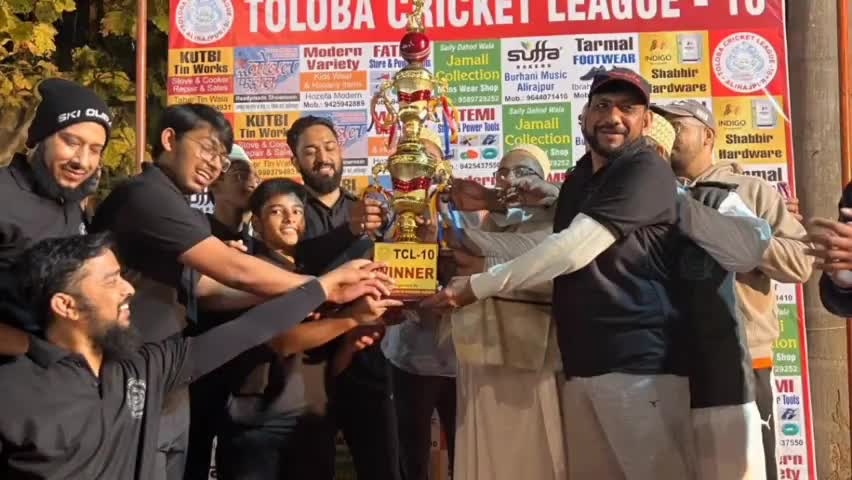 अलीराजपुर आका मौला सैयदना मुफद्दल सैफुद्दीन की मिलाद मुबारक की खुशी के मौके पर स्थानीय दाऊदी बोहरा समाज के फखरी बाग में टीकेएम द्वारा टीसीएल के 10वें सीजन का आयोजन किया गया। तोलोबा सेक्रेटरी बुरहानुद्दीन कटलरीवाला एवं मोहम्मद लाइटवाला ने रविवार रात आठ बजे बताया कि टूर्नामेंट में आठ टीमों ने भाग लिया।