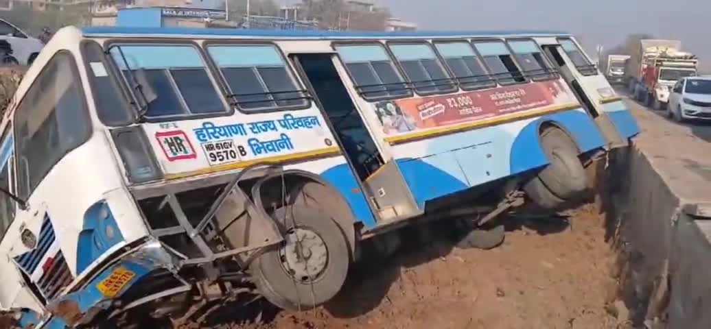 ਡੇਰਾਬਸੀ ਵਿਖੇ ਚੰਡੀਗੜ੍ਹ ਅੰਬਾਲਾ ਹਾਈਵੇ ਤੇ ਹਰਿਆਣਾ ਰੋਡਵੇਜ਼ ਦੀ ਭਿਵਾਨੀ ਡਿਪੋ ਦੀ ਬਸ ਪਿੰਡ ਭਾਂਖਰਪੁਰ ਨੇੜੇ ਖਦਾਨਾ ਵਿੱਚ ਪਲਟ ਗਈ