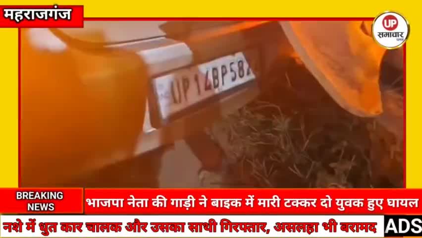 महाराजगंज। नगर चौराहे पर तेज रफ़्तार कार ने बाइक में मारी टक्कर, नशे में धुत दो पुलिस हिरासत में असलहा भी बरामद ।