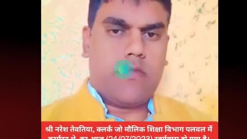 सड़क दुर्घटना में जिला मौलिक शिक्षा अधिकारी कार्यालय में क्लर्क के पद पर कार्य करने वाले नरेश तेवतिया का हुआ निधन