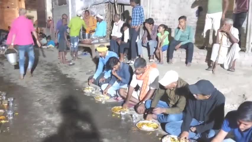 गांव की भोज सहर से अलग होता है जमिन पे बैठ के खाते है खाना गांव देहात मे #ranjeet_bihari #katra
