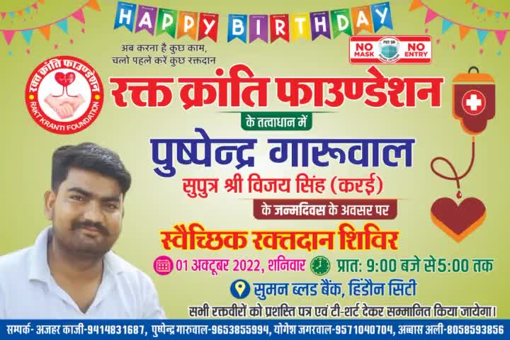 1 अक्टूबर को होने वाले रक्तदान शिविर में अधिक से अधिक रक्तदान करे