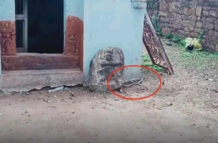 రుద్రవరం: శ్రీరంగాపురంలోని శ్రీ రామ ఆంజనేయ స్వామి గుడిలో నాగుపాము కలకలం