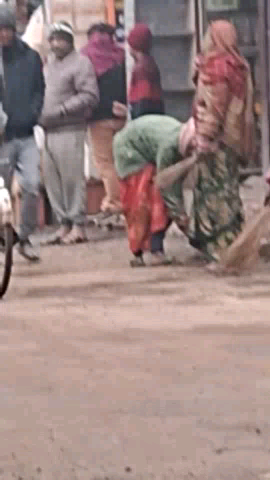 maheshkhunt बाजार के रोड का रिपेयरिंग से पहले साफ सफाई करती महिला