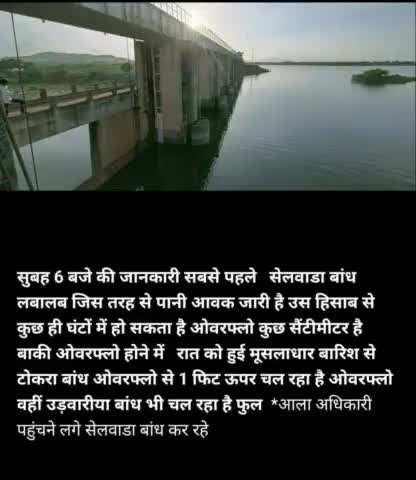 आज कि ताजा खबर सेलवाडा डेम 0.35 सेंटीमीटर खाली है तथा पानी का बहना ज्यादा रहा तो ऑवरफलो होने कि सम्भावना है #new #news