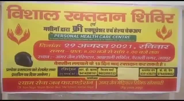परबतसर: विशाल रक्त दान शिविर लगाया क्राइम बेन इंडिया टीम के द्वारा 🙏