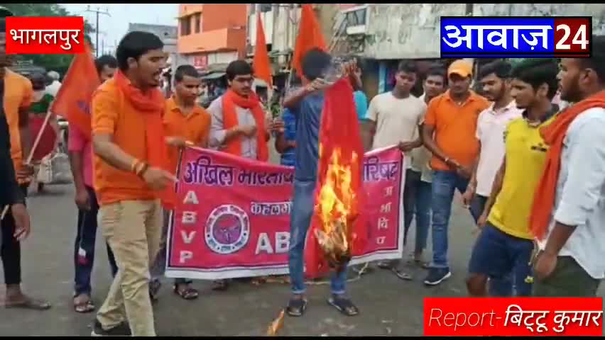 पूर्णिया पूर्व: भागलपुर #अखिल भारतीय विद्यार्थी परिषद द्वारा#चीन के #झंडे को जलाकर विरोध प्रदर्शन