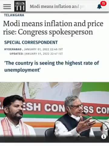In today's newspapers, excerpts of the press conference organized at Telangana Congress HQ Gandhi Bhawan, Hyderabad in the course of inflation, unemployment & price rise gifted by Modi government on the occasion of New Year.