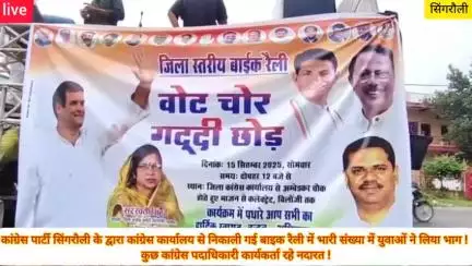 कांग्रेस पार्टी सिंगरौली के द्वारा कांग्रेस कार्यालय से निकाली गई बाइक रैली में भारी संख्या में युवाओं ने लिया भाग !