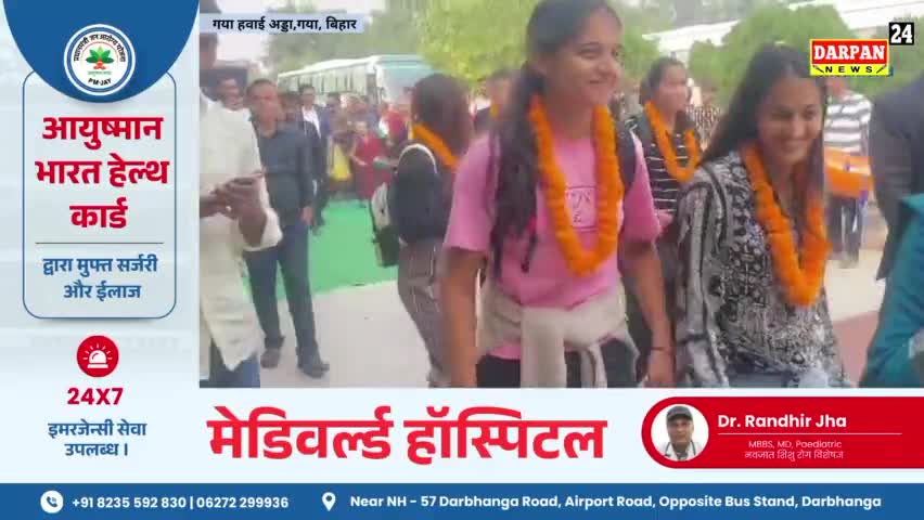 गया हवाई अड्डा पर महिला हॉकी खिलाड़ी को दी गई विदाई की एक झलक