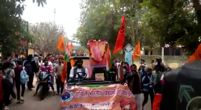 युवा दिवस पर अखिल भारतीय विद्यार्थी परिषद के कार्यकर्ताओं द्वारा बुंदेलखंड विश्वविद्यालय के प्रांगण में शोभायात्रा