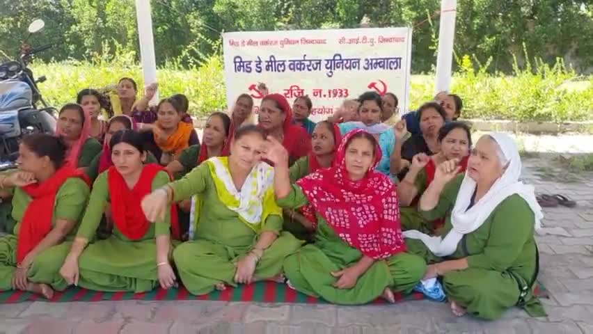 अंबाला में आज मिड डे मील हेल्पर यूनियन के बैनर तले यूनियन ने सरकार के खिलाफ की नारेबाजी ..