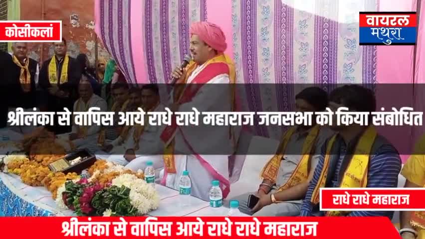 छाता: बरका धाम राधे राधे बाबूजी श्री लंका राष्ट्रपति द्वारा सम्मानित होने के बाद कोसी कला मे जनता को संबोधित किया क्या बोले