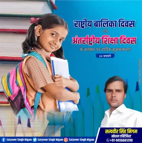 राष्ट्रीय बालिका दिवस एवं अंतर्राष्ट्रीय शिक्षा दिवस की समस्त देशवासियों को हार्दिक सुभकामनाएँ, #24जनवरी
