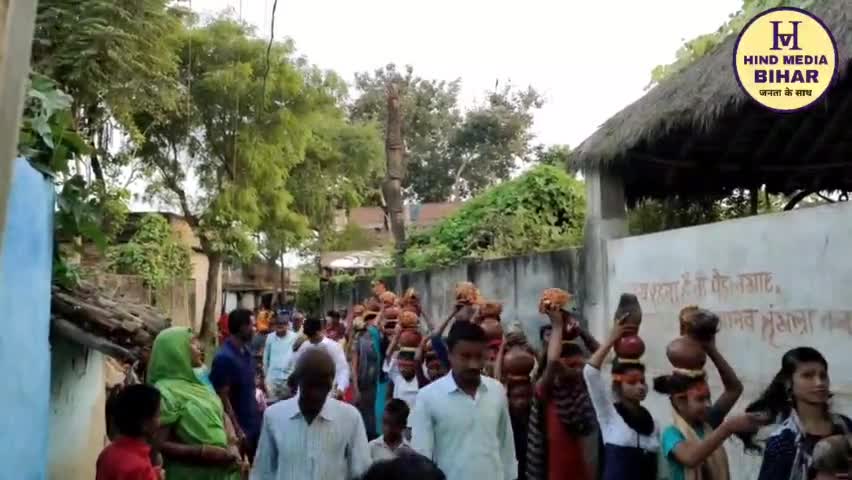 नवरात्रि के आखिरी दिन भक्त कलश विसर्जन करने के लिए कतार बध तरीके से जाते हुए।