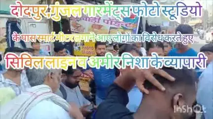 स्मार्ट मीटर का विरोध करते अमीर निशा व दोदपुर के व्यापारी। मौजूद रहे सिविल लाइन अध्यक्ष नौशाद मिर्जा जी एवं उनकी टीम