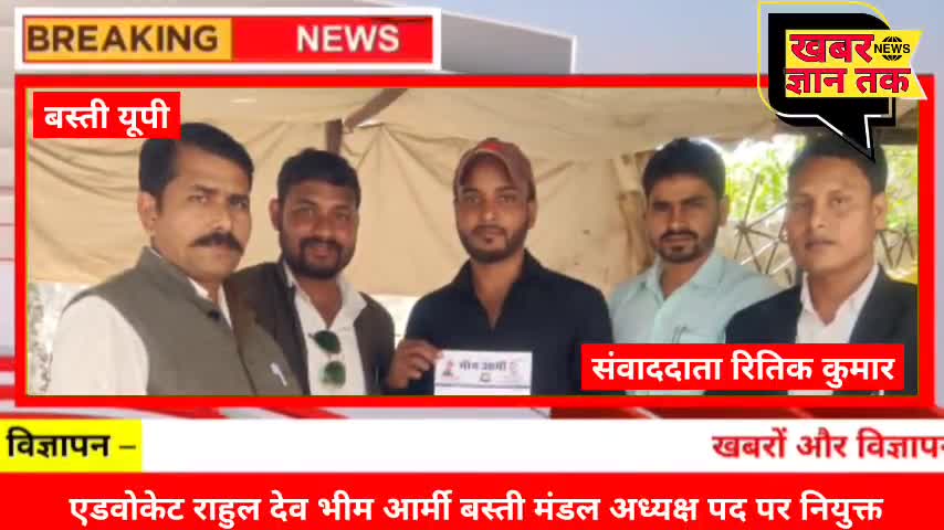 Basti News:एडवोकेट राहुल देव भीम आर्मी बस्ती मंडल अध्यक्ष पद पर नियुक्त//खबर ज्ञान तक न्यूज़ बस्ती//