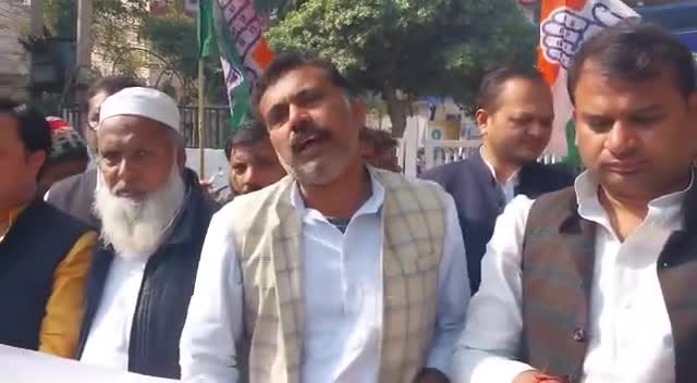 अडानी समूह के विरोध में एसबीआई हापुड़ शाखा पर धरना प्रदशन कर सरकार से जांच की मांग की