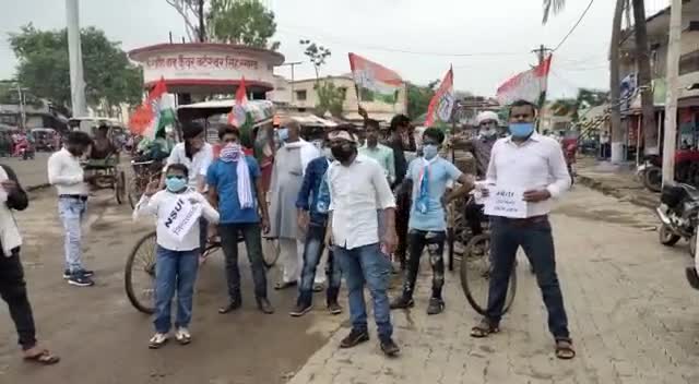 महागामा: #NSUI के नेतृत्व में आज महागामा_गंगासागर से बसुआ_चौक तक पेट्रोल ,डीजल के दामों में बढोतरी को लेकर नारेबाजी व विरोध किया