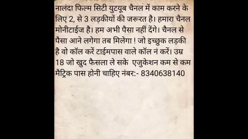 युटयूब चैनल के लिए महिला कलाकार की जरूरत है