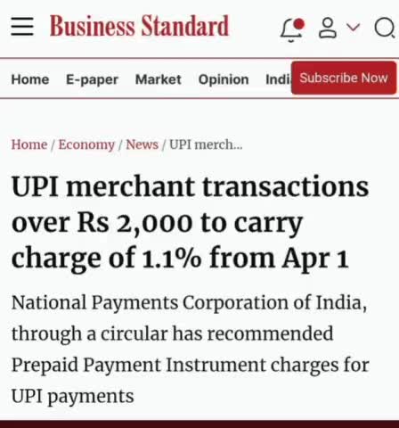 प्रयागराज: #UPI Transactions Over Rs 2,000 To Attract 1.1% Fee