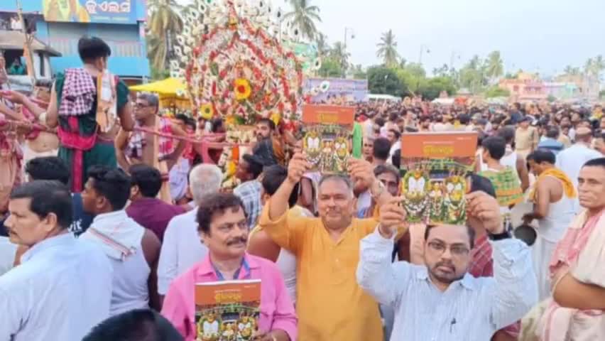 କେନ୍ଦ୍ରାପଡା: ଇଚ୍ଛାପୁର ରଥଦାଣ୍ଡରେ ଉନ୍ମୋଚନ ହେଲା ଶ୍ରୀବଳଦେବ ଚେତନାର ସାରସ୍ୱତ ଅକ୍ଷର 'ଶ୍ରୀତାଳଧ୍ଵଜ' ପତ୍ରିକା
