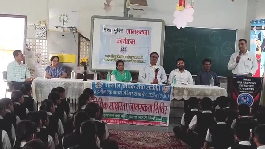 आज दिनांक 25 अप्रेल को सुबह 10 बजे राज राजेंद्र जयंत सेन विद्यापीठ में विधिक जागरूकता शिविर आयोजित किया गया।आयोजित शिविर में भारतीय संविधान के नियमों आपराधिक गतिविधियों से होने वाली सजा भविष्य में होने वाले नुकसान अपराधो को रोकने के लिये कानून के उपयोग और सोशल मीडिया के बढ़ते दुरुपयोग की जानकारी विद्यार्थियों को दी गई ।