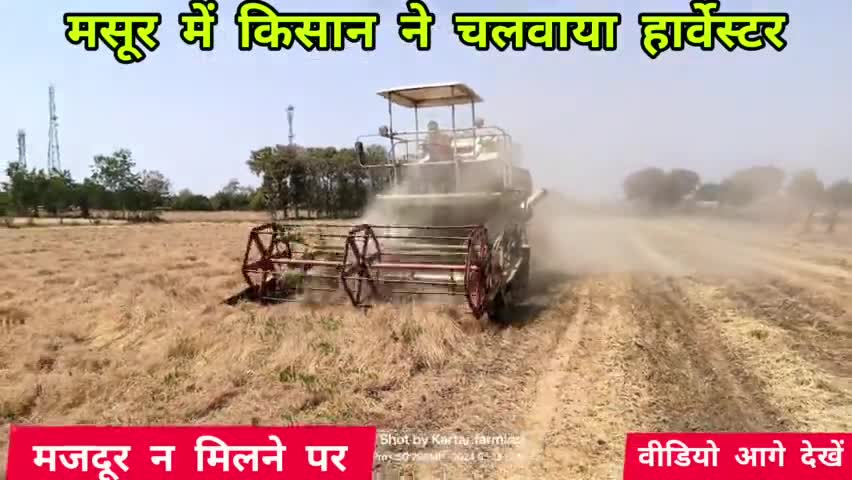 मजदूर नही मिलने पर किसान ने मसूर में चलवाया हार्वेस्टर 👉मेरे kartar farming यूट्यूब चैनल पर वीडियो देखे