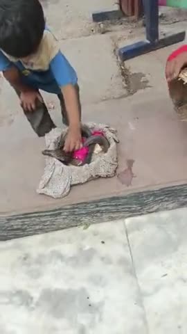 बुद्धेश्वर महादेव मंदिर लखनऊ, छोटा बच्चा साप से खेलता हुआ