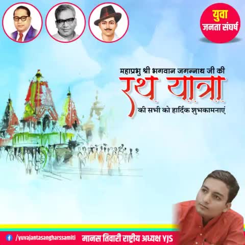 महाप्रभु श्री जगन्नाथ जी की पावन रथ यात्रा के शुभारंभ की सभी श्रद्धालुओं को हार्दिक बधाई। भगवान जगन्नाथ जी की कृपा सम्पूर्ण सृष्टि पर बनी रहे। सभी का जीवन शांति, समृद्धि व आरोग्यता से परिपूर्ण हो। प्रभु की यह रथ यात्रा चराचर जगत के लिए मंग