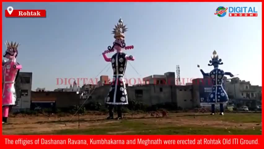 रोहतक ओल्ड आईटीआई ग्राउंड में दशानन रावण, कुम्भकर्ण व मेघनाथ के पुतले खड़े कर दिये गए। #RohtakNews #Dushehra #VijayDashm