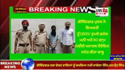 ਅਮਲੋਹ: ਗੋਬਿੰਦਗੜ ਪੁਲਿਸ ਨੇ 1800 ਡਰੱਗ ਮਨੀ ਅਤੇ 80 ਗਾ੍ਮ ਨਸ਼ੀਲੇ ਪਦਾਰਥ ਸਮੇਤ ਕੀਤਾ ਇੱਕ ਕਾਬੂ !