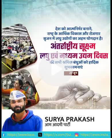 अंतर्राष्ट्रीय सूक्ष्म लघु एवं माध्यम उद्यम दिवस कि सभी श्रमिक भाइयों को शुभकामनाएं।