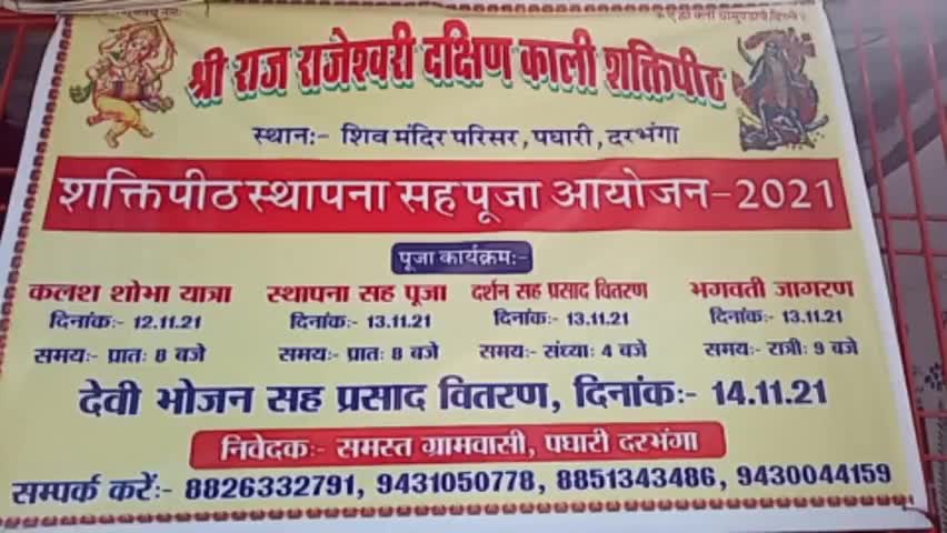 बहेरी: "12/11/2021को "पघारी मंदिर के प्रांगण में काली मां के मुर्ति स्थापना हेतु भव्य कलश यात्रा निकाली गई।जय मां काली 🙏