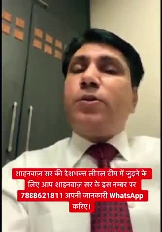 शाहनवाज सर की *देशभक्त लीगल टीम* में जुड़ने के लिए, आप शाहनवाज सर के इस no. पर 7888621811अपनी जानकारी what'a aap करे।