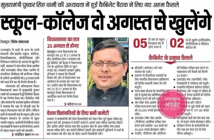 अल्मोडा जिले के सभी स्कूलों को2 अगस्त से खोला जाएगा।