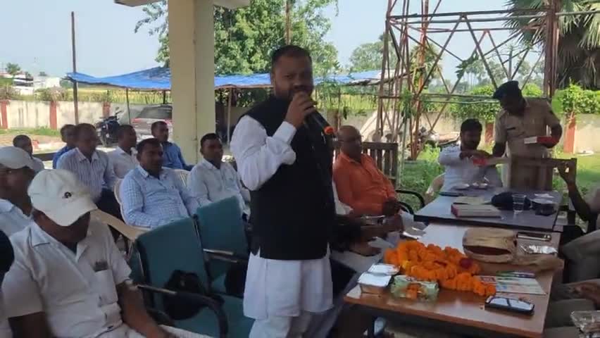आती थाना के प्रांगण में आयोजित सम्मान समारोह को सम्बोधित करते यूवा नेता अधिवक्ता श्री शम्भ नाथ यादव।