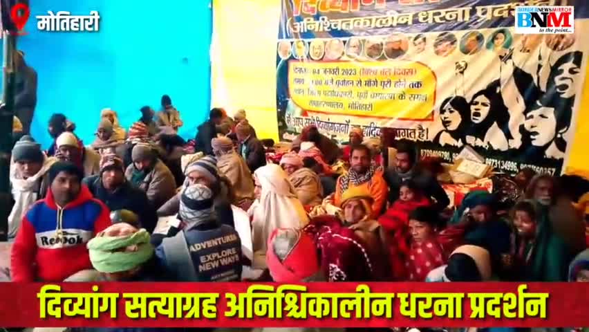 कड़ाके के ठंड में दिव्यांगो का धरना प्रदर्शन