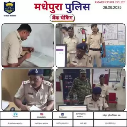 पुलिस अधीक्षक मधेपुरा के निर्देशानुसार बैंकिंग प्रतिष्ठानों में सुरक्षा व्यवस्था को सुनिश्चित करने हेतु बैंकों की सुरक्षा /जांच की जा रही हैं। बैंक के अंदर एवं बाहर संदिग्धों पर निगरानी रखी जा रही हैं।