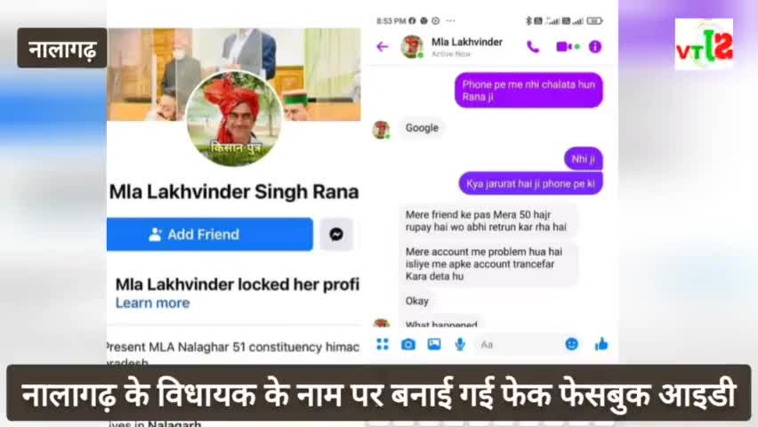 नालागढ़: नालागढ़ के विधायक लखविंद्र सिंह राणा की फेसबुक आई डी हैक,हैकर मांग रहा पैसे
