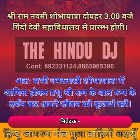 श्री राम नवमी शोभायात्रा में सभी सनातनी भाई बहिन का हार्दिक अभिनंदन।