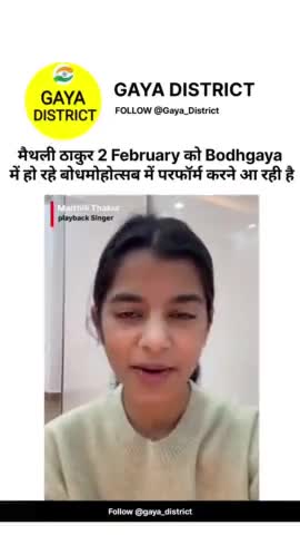 मैथली ठाकुर 2 February को Bodhgaya में हो रहे बोधमोहोत्सब में परफॉर्म करने आ रही है