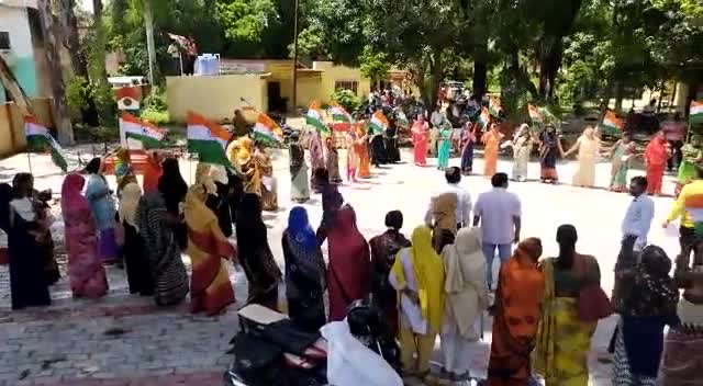 अमृत महोत्सव के उपलक्ष में ब्लाक एलिया में तिरंगा रैली का कार्यक्रम कराया गया NRLM समूह की महिलाओ ने हिस्सा लिया