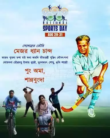 ওগস্ত ২৯-৩১ দা ভারত পুম্বদা চাউনা সেলেব্রেত তৌগদৌরিবা অসিদা শরুক য়াবিয়ু অমদি পুং অমা, শান্নবুংদা হায়বা ৱাশক লৌমিন্নসি। #NationalSportsDay2025 #KhelegaDeshKhilegaDesh
