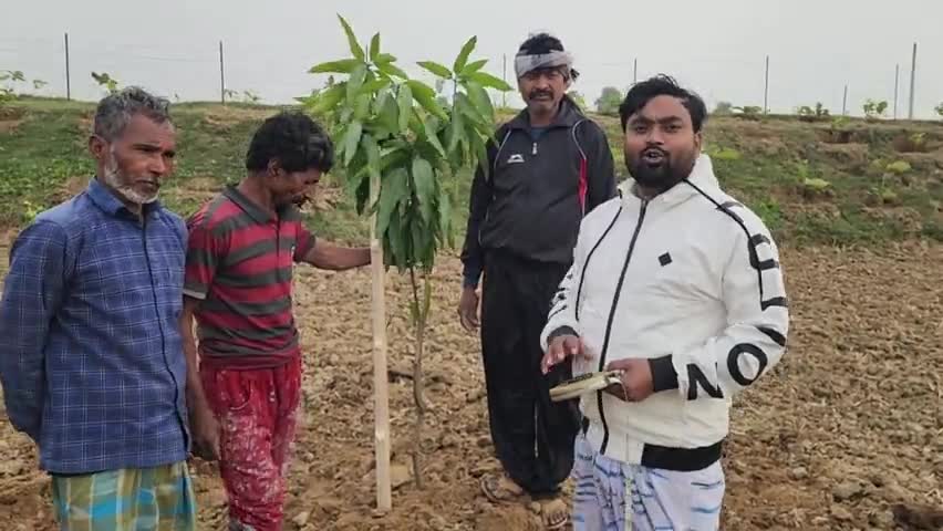 अपने खेत में आम का पौधा लगाया।