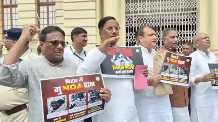 बिहार विधानसभा में कांग्रेस का विरोध प्रदर्शन।