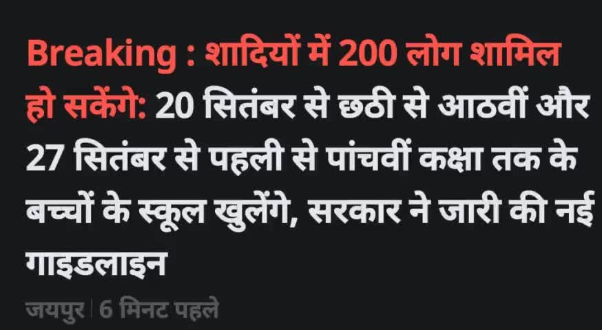 कक्षा 1से 5, 27 सितम्बर से कक्षा 6 से 8, 20 सितम्बर से 50 % के साथ विद्यालय खोलने की गृह विभाग की गाइडलाइन जारी।